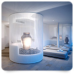 The restaurant FACIL in the green courtyard on the 5th floor comes with an open-air terrace and offers an exquisite buffet breakfast. The QIU Lounge on the 1st floor offers refined cocktails and fine foods in the uniquely inspiring atmosphere. The 600 m2 ONO Spa on the top floor is a world of holistic well-being and inner peace high above Berlin. Guests enjoy panoramic city views and treatments tailor-made for those who value individualism and privacy.